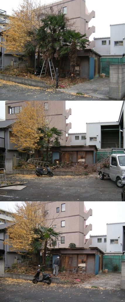 駐車スペースの確保ということで、シュロと柿の木の伐採と切り株の抜根を承りました。