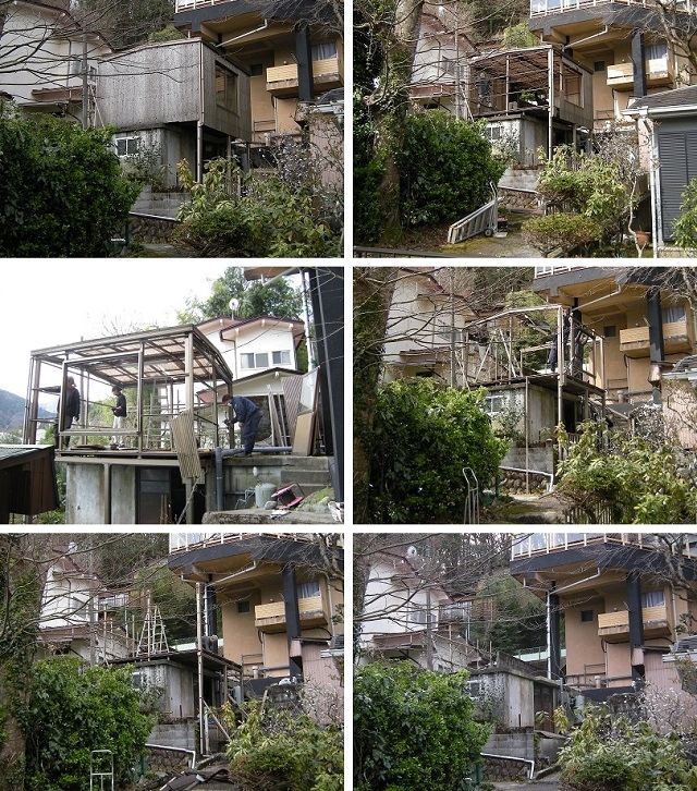 初めに中のご不用品少々を搬出し、次に外壁から外しました。