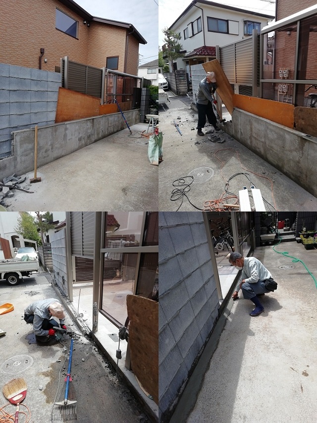車幅のある乗用車ご購入にともない、車庫スペース脇のブロック積みフェンス撤去のご注文を頂きました。