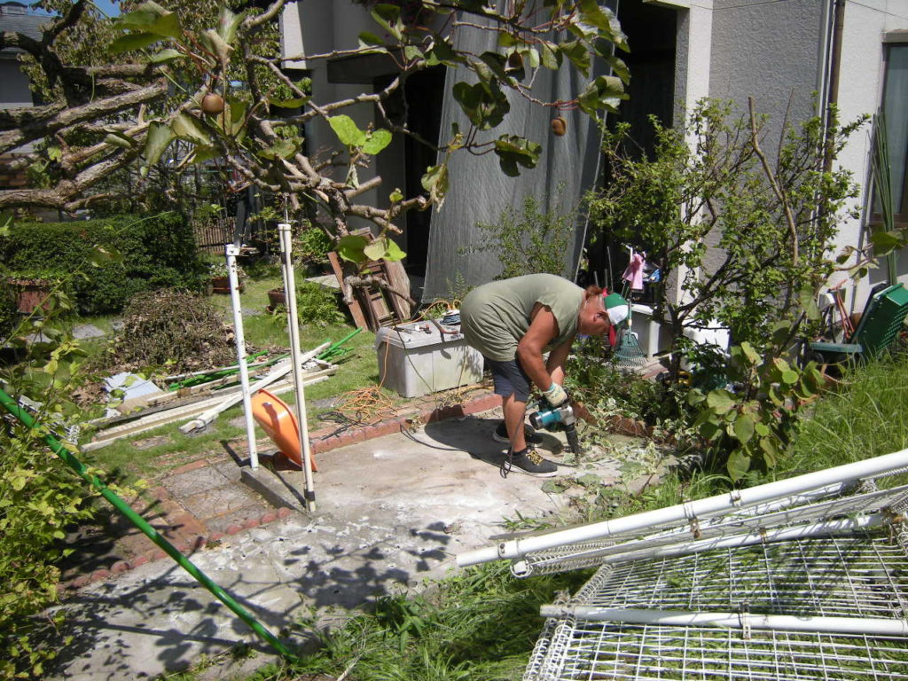 犬用ゲージに囲まれていたコンクリート敷を電動ハンマーでたたき、元の花壇の状態に戻しました。