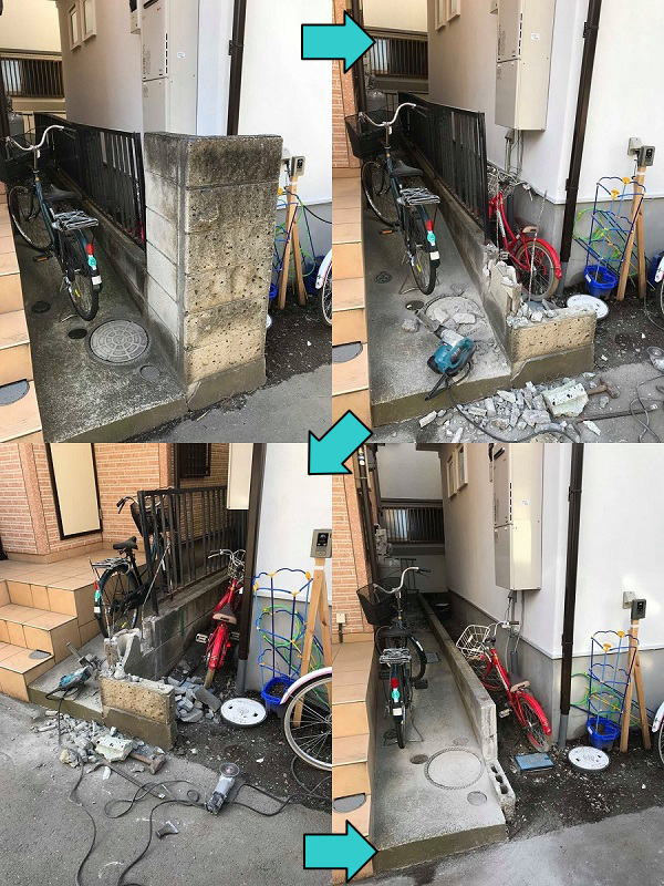 車庫スペースとなりにあったコンクリートブロック塀の撤去を承りました。
